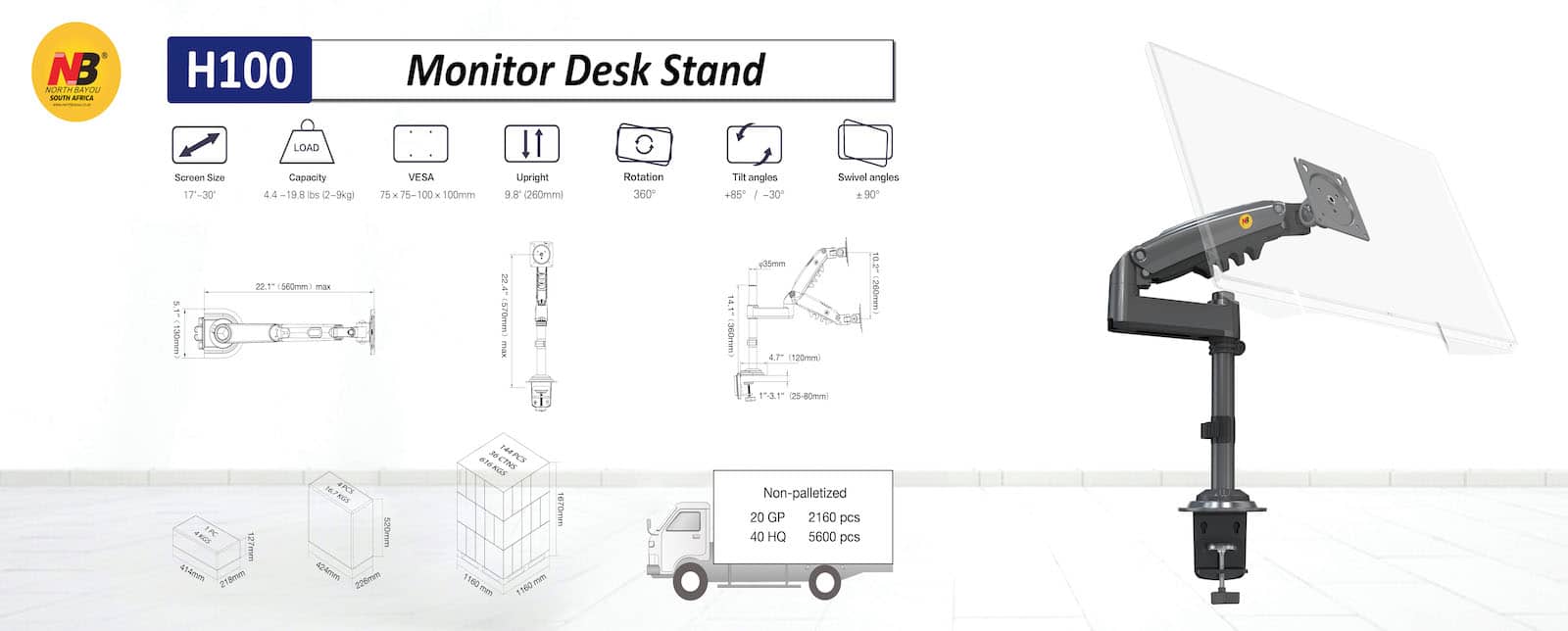 Swivel monitor desk mount for 22″-35″ screens (H100)